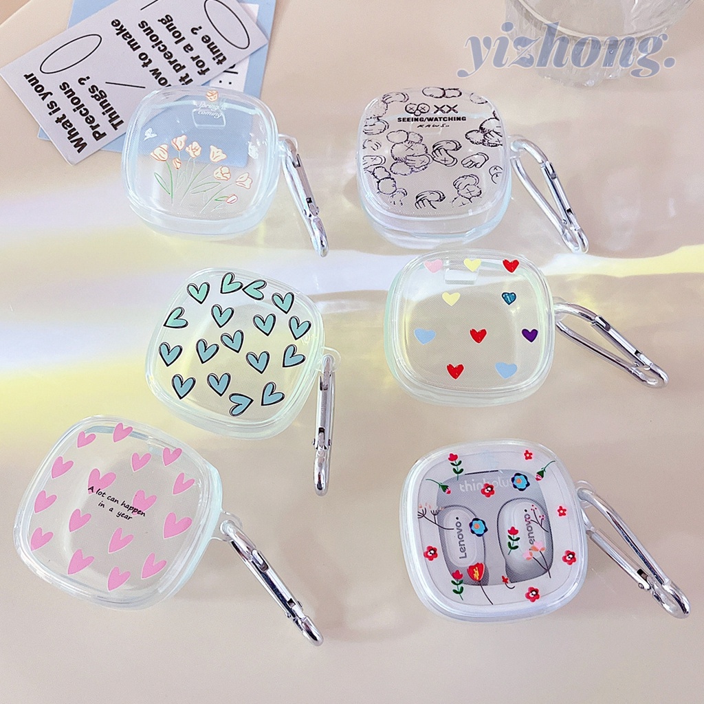Lenovo Thinkplus XT62 Caixa Para Fone De Ouvido Bluetooth Cor Do Coração Impressão Floral Capa Macia TPU Com Anel De Fivela Anti-Perda Concha Protetora Queda Sem Fio Transparente