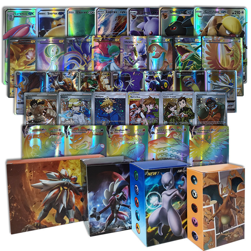 100 Pçs Vmax/GX Pokemon Cartões TCG Cartão De Negociação Booster Brilhantes Crianças Jogo Presente Para Menino Coleção D