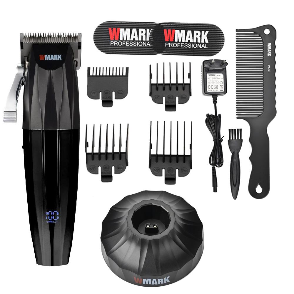 Kit Maquina De Corte Cabelo Wmark NG 409 Lamina Vazada Com Base Transparente
