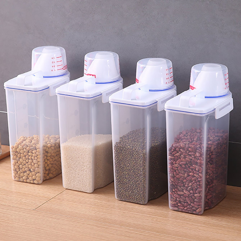 Kit 3 Potes Herméticos Copo Dosador Porta Sabão em Pó Líquido Amaciante Lavanderia Grãos Mantimentos Dispenser Ração