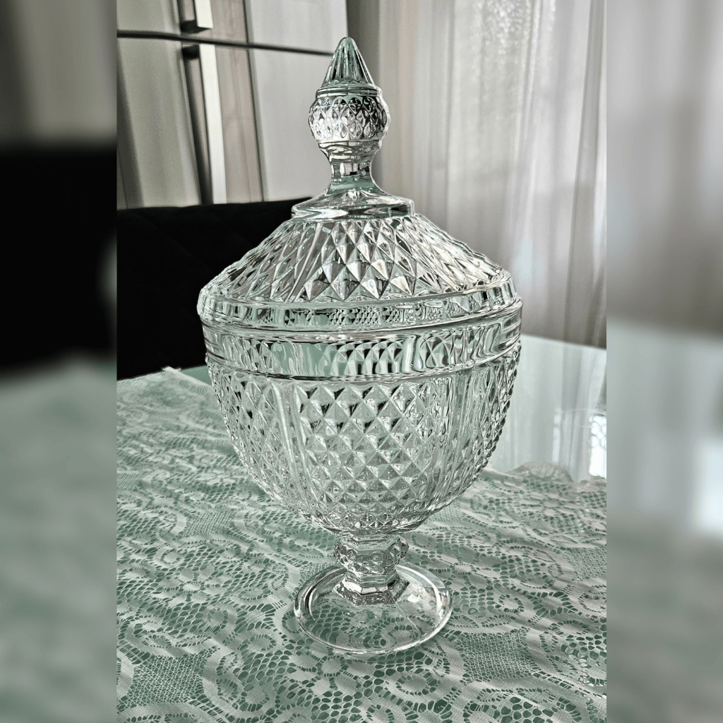 Potiche Cristal Com Pé Vidro Transparente Bomboniere Com Tampa 15x28 Pé de jaca