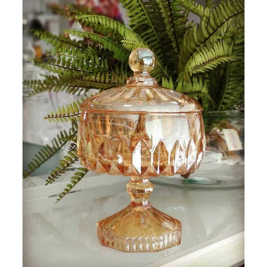 Potiche Decorativo de Cristal com Pé Louise Âmbar 15,5cm x 23cm - Wolff