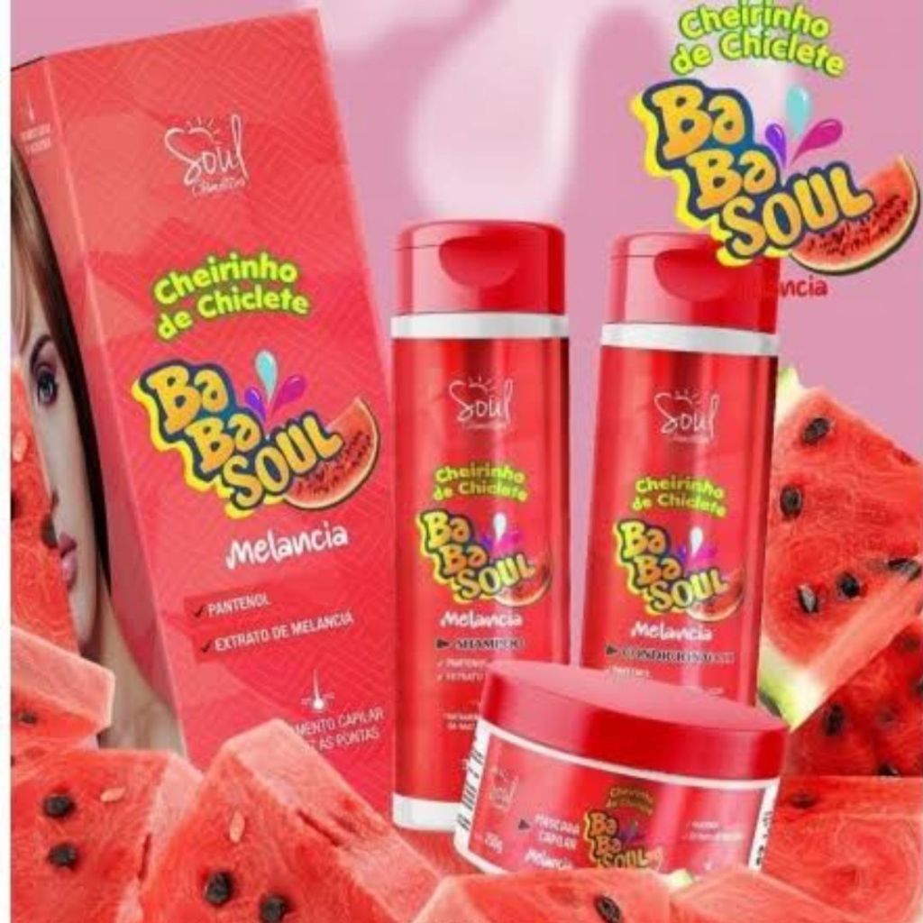 Kit Tratamento Capilar Cheirinho de Chiclete Melancia BabaSoul - Shampoo + Cond + Máscara