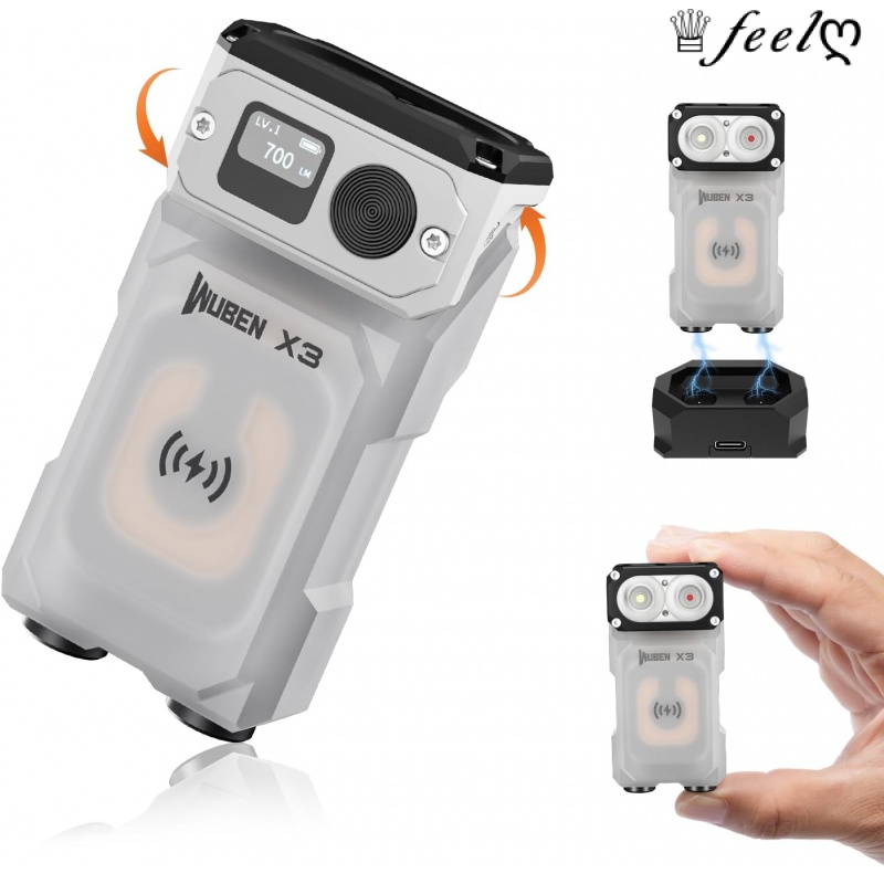 Lanterna De Bolso WUBEN X3 Recarregável Mini Com Base De Carga E Ímã , EDC De 180 Graus Ip65 Chaveiro À Prova D'água De 10 Modos De Carregamento Tipo C Para Acampamento