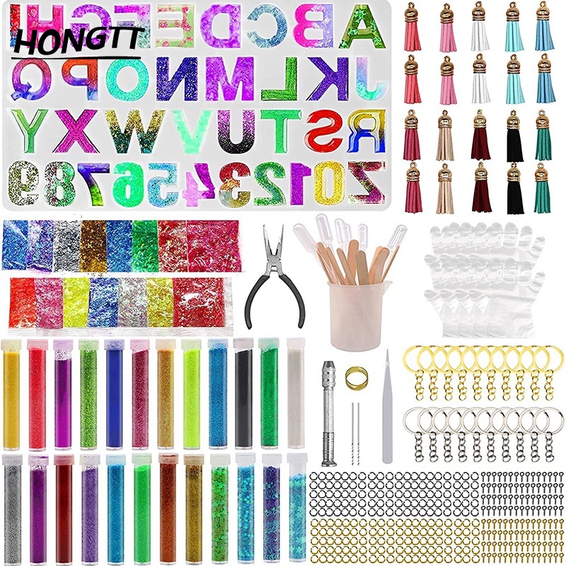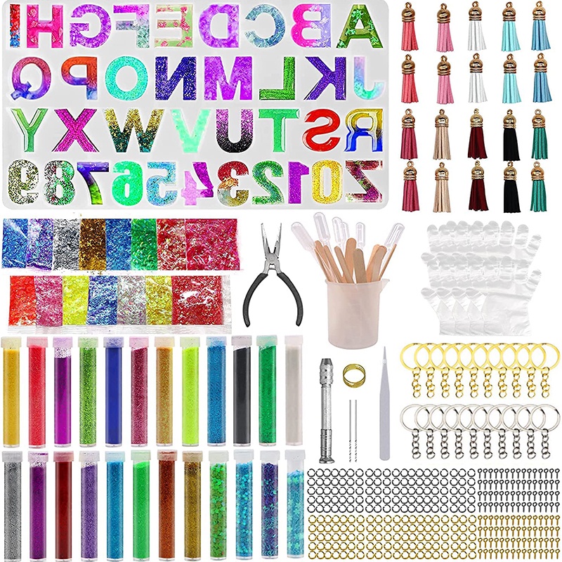 510 Pcs Alfabeto Moldes De Silicone Epóxi Resina Letras Número Kit DIY Reversa Para Fazer Jóias Chaveiro Fundição