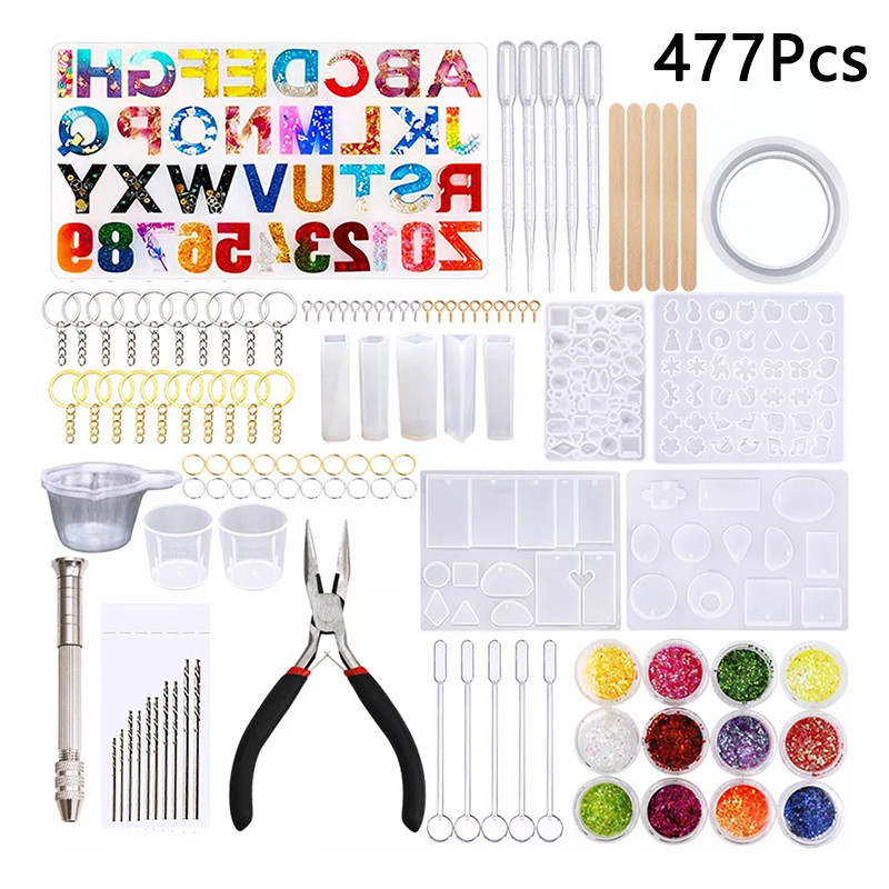 477 Pcs Alfabeto Moldes De Silicone Epóxi Resina Letras Número Kit DIY Reversa
