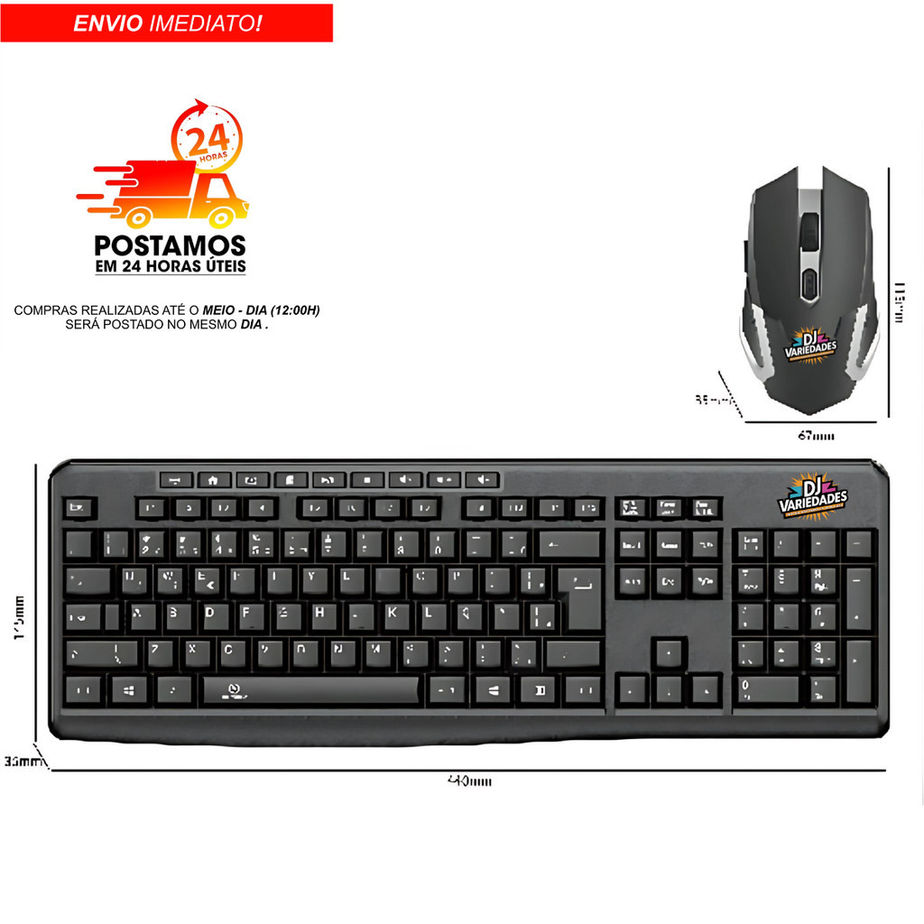 Kit Teclado E Mouse Sem Fio Wireless 2.4ghz 3200dpi Optico