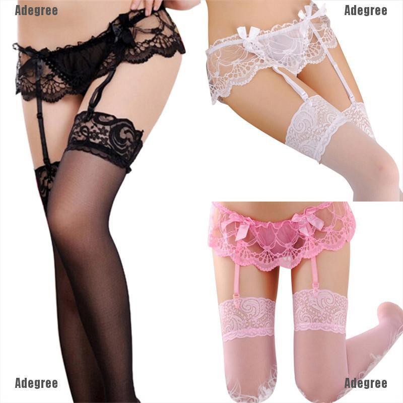【 Ag】 ✿ Sexy Meias De Renda Garter Belt Suspender Set Feminina Lingerie Sexy Liga Cinto