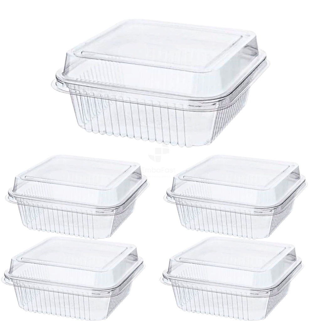100 Embalagem Descartável Pote Quadrado Com Tampa Articulada S641 - 200ml Para Bolos, Doces, Tortas, Sobremesas, Bombons, Brigadeiros