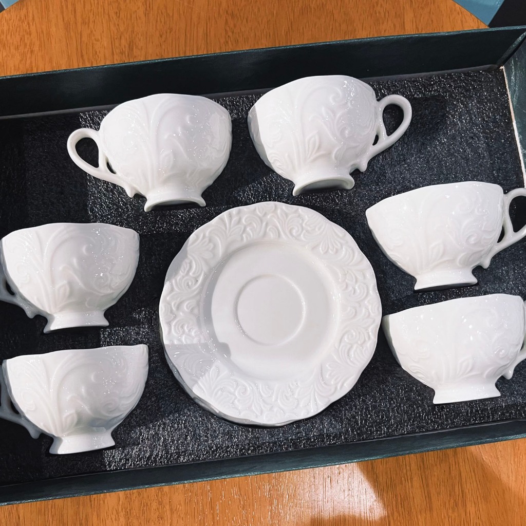 Kit Xícaras e Pires Café Porcelana Premium - Jogo de Luxo para Presente 6 xicaras + 6 pires