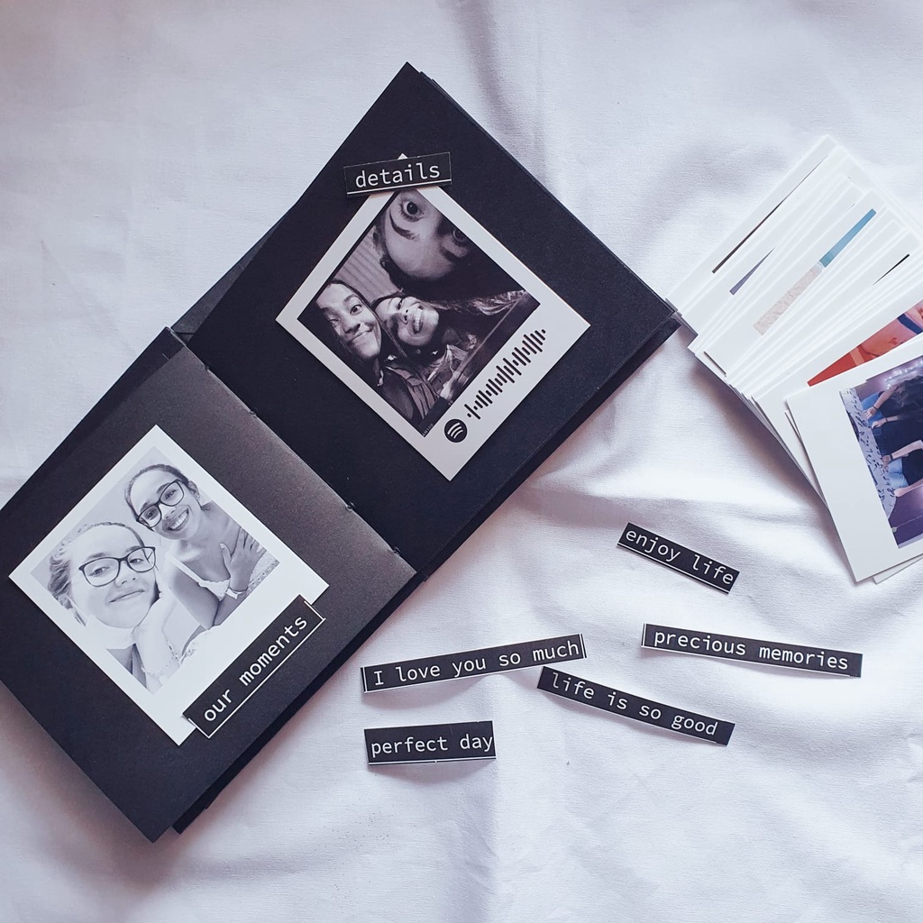 Kit mini scrapbook + 18 fotos retrô + adesivos decorativos - Presente Criativo para Namorado (a) - Álbum de memórias