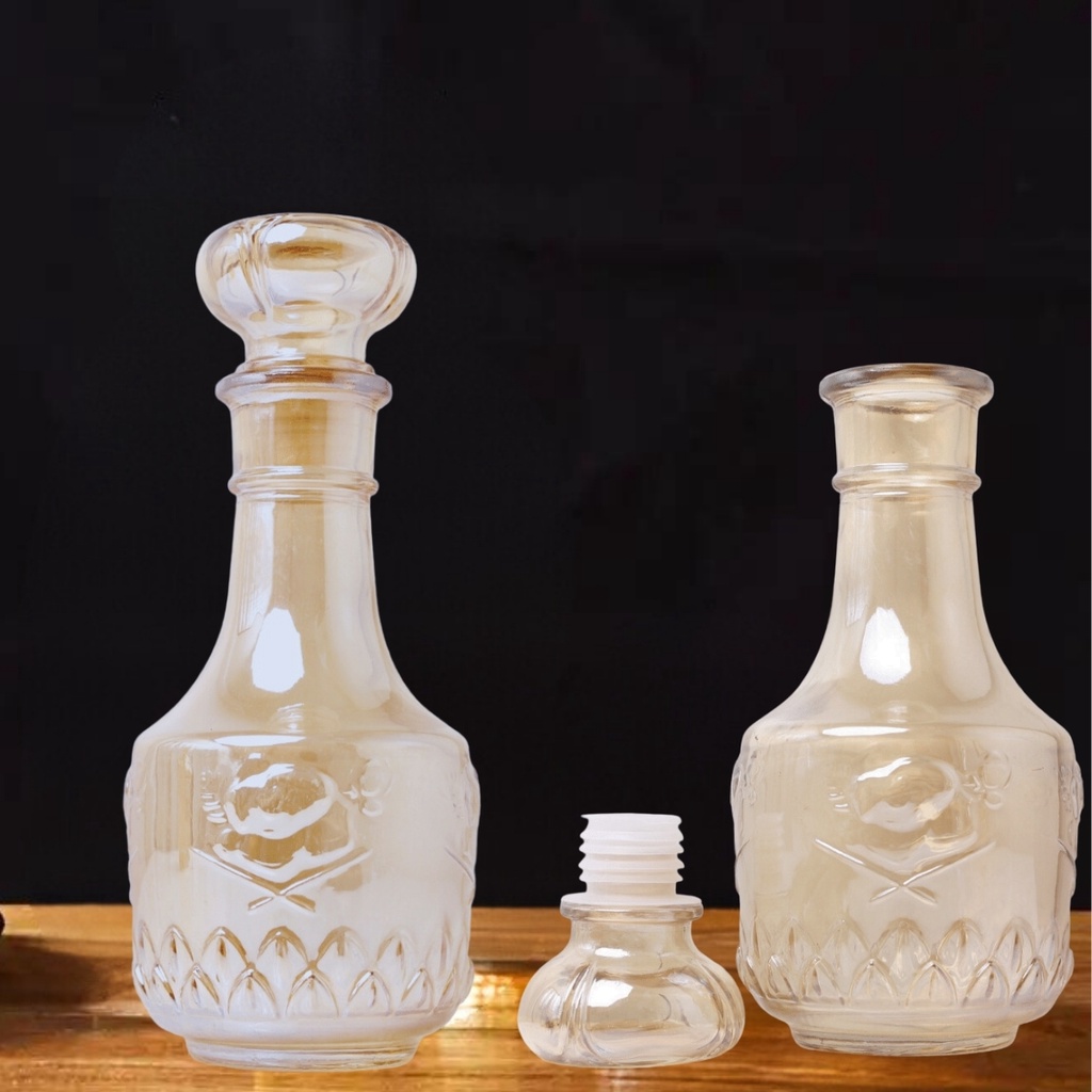 Kit 2 Garrafas Licoreira Profissional Grande 500ml De Vidro Conjunto Frasco Licoseira Dourada Para Bebidas Clássicas Licor Whisky Vodka Conhaque, De Luxo Presente Decoração