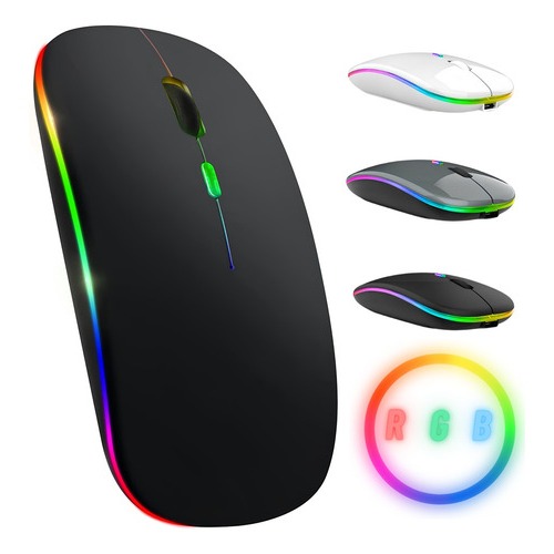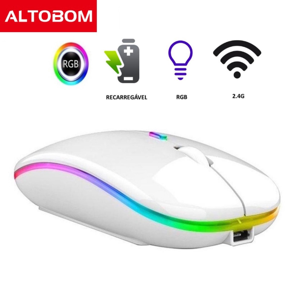 Mouse Sem Fio Bluetooth Recarregável Led Rgb 2,4GHz Ultra slim Wireless óptico Ergonômico Silencioso Bateria Longa Duração