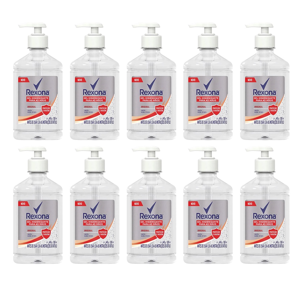 Kit 10 Alcool Em Gel 70o Inpm Rexona Original 500ml Pronta Entrega