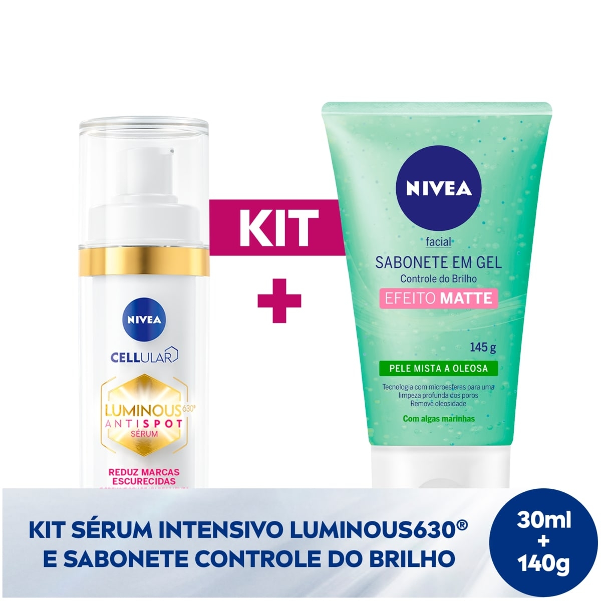 Kit Nivea Luminous 630 Sérum Intensivo 30 ml + Sabonete em Gel Controle do Brilho 145g