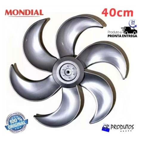 Hélice / Botão Trava / Hélice + Botāo Ventilador Mondial 40cm 40 Vt41 ou V45 ou Nv-75 ou Maxi Power 6 Pás Prata Original EIXO Redondo 8mm Kits