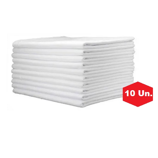 Pano De Prato Liso Branco Pe de galinha Grande Com Bainha Kit Com 10 Peças