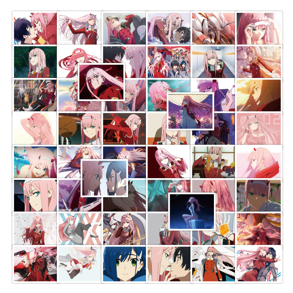 52 pcs DARLING No FRANXX Adesivos De Pôsteres Quadrados À Prova D'água Anime