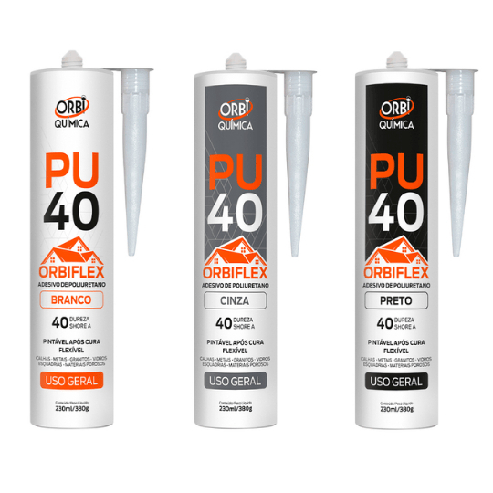 Selante Cola PU 40 Todas as Cores Preto/Branco/Cinza - Construção Reparo Uso Geral 380g Orbi Química