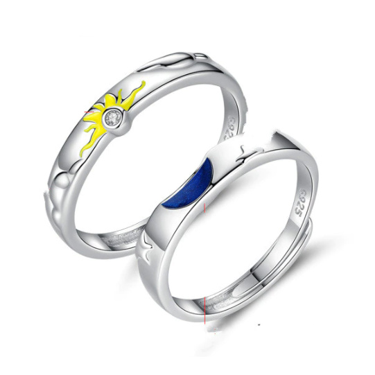 Aliança Sol & Lua / Anel De Prata Sol E Lua -- Par Modelo em 100% Prata 925