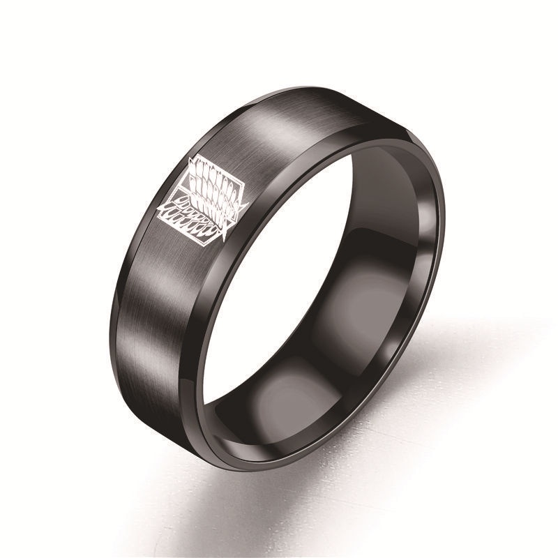 Anime Ataque em Titã Asas da Liberdade Anel de Titânio Aço Preto Prata