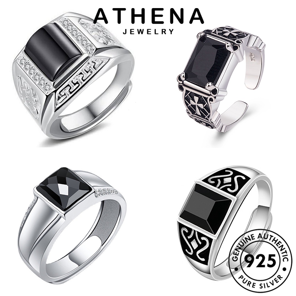 ATHENA JEWELRY aliança pura 925 berloque ônix anéis anel simplicidade joias masculina solitário casamento negro prata compromisso legítima original masculino em negro diamante obsidiana pratas de M090