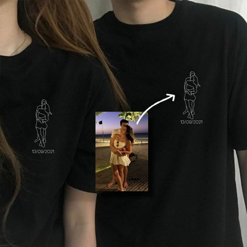 Kit de 2 Camisetas Personalizadas Para Namorados Casais + Quadro com 6 Fotos Dia dos Namorados