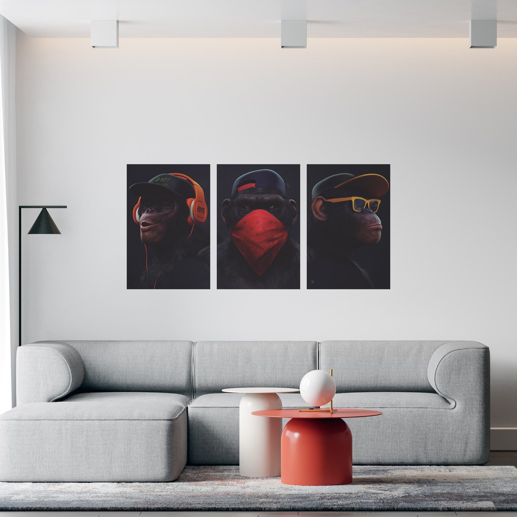 Kit 3 Quadros decorativos monkey gamer quadro dos macacos boné 60x40cm cada impressão digital sem moldura com fita-dupla