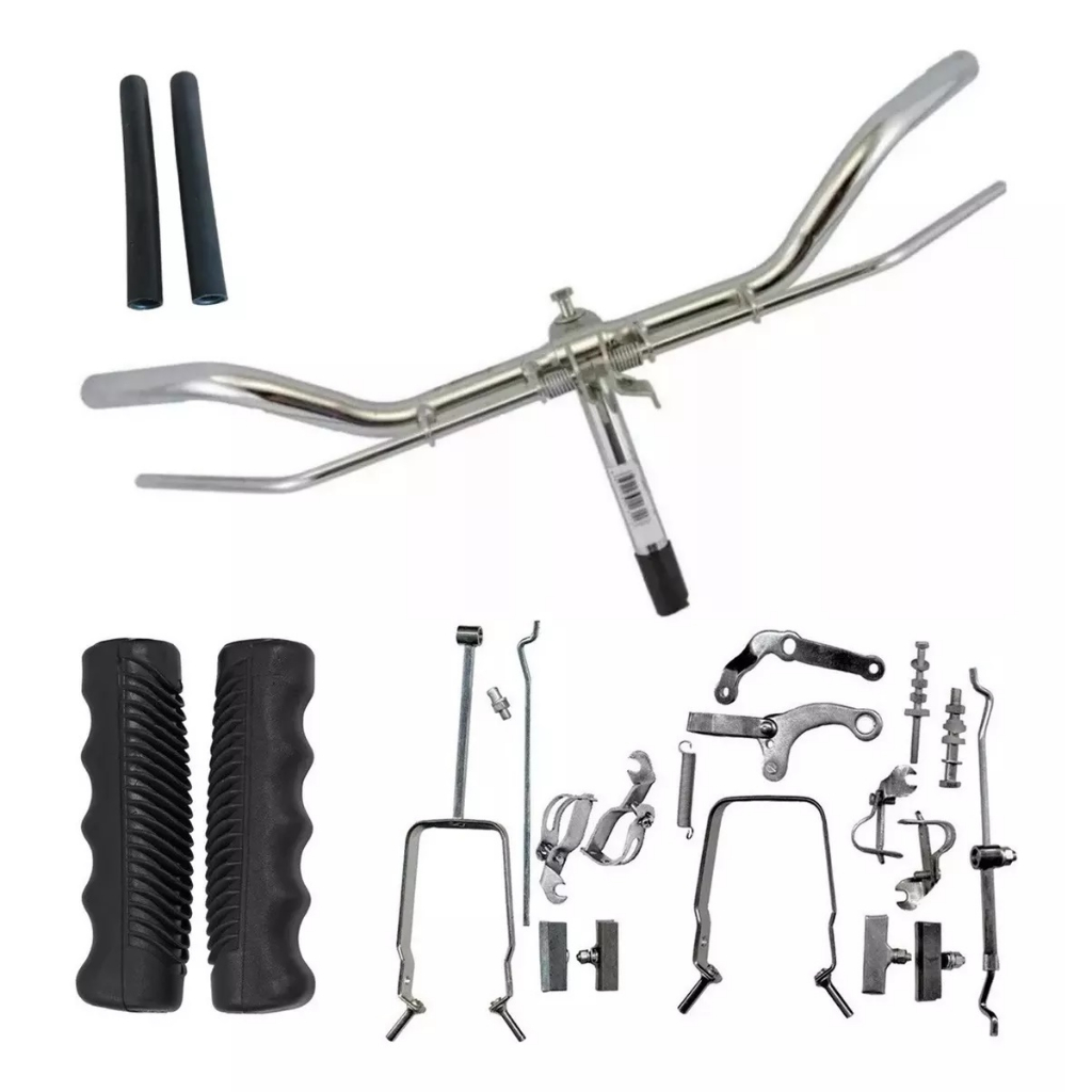 KIT de Freio Varão Caneta COMPLETO com Esporas, Guidão, Manoplas, Borrachas, Expander e Parafusos para Bicicleta