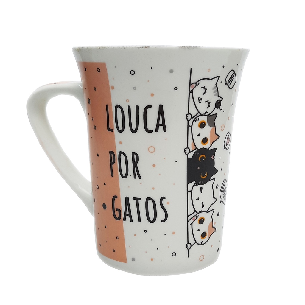 Caneca Xícara Cerâmica 340ml Café Chá Louca Por Gatos