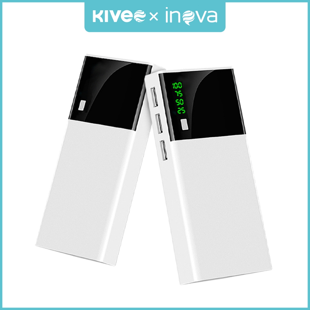 KIVEE x INOVA Carregador Portátil Power Bank 10000mAh, Bateria Externa, Display Digital, Entrada 3 Usb, Para iPhone Samsung
