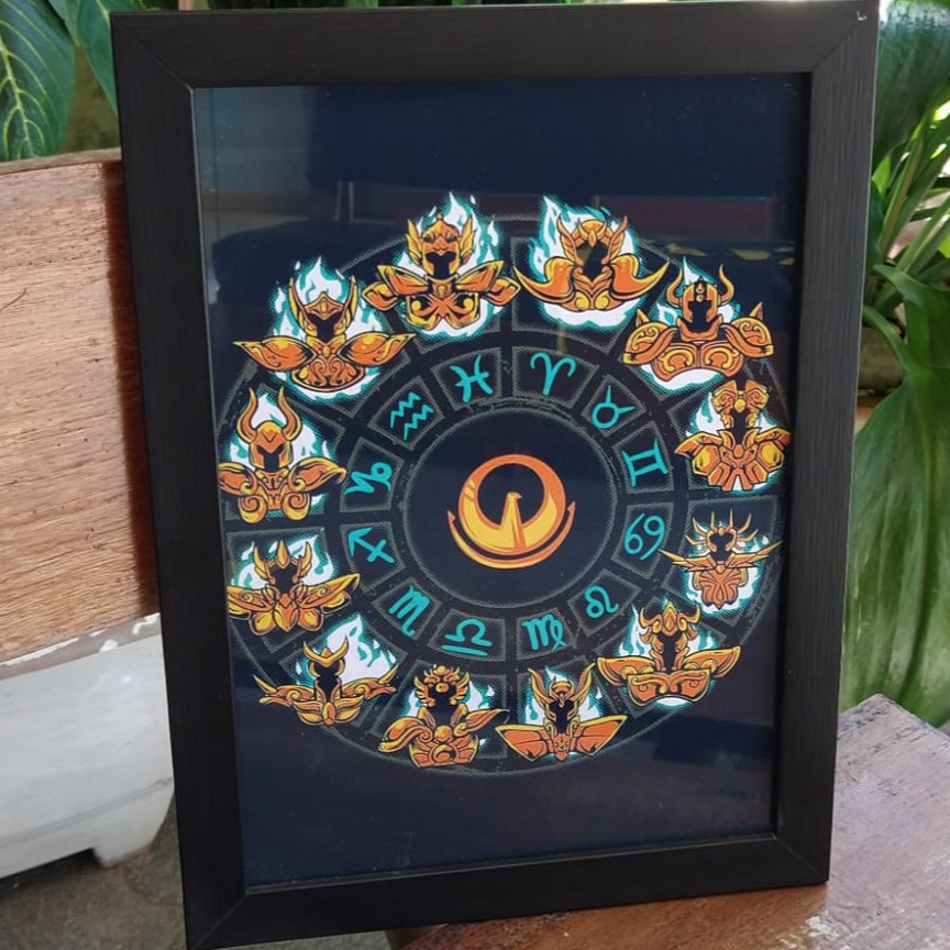 Quadro para decoração com moldura e vidro anime Os Cavaleiros do Zodíaco Áries, Touro, Gêmeos, Câncer, Leão, Virgem, Libra, Escorpião, Sagitário, Capricórnio, Aquário e Peixes Shaka
