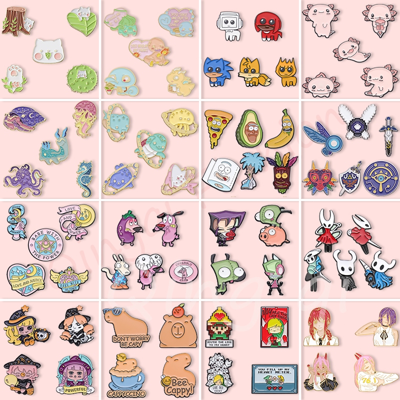 4-6pcs/Set Jogo De Desenhos Animados Pins De Esmalte De Personagens Cavaleiros Zelda Cowardly Dog Brooch Lapel Badges Animais Bonitos Jóias Presente Para Amigos