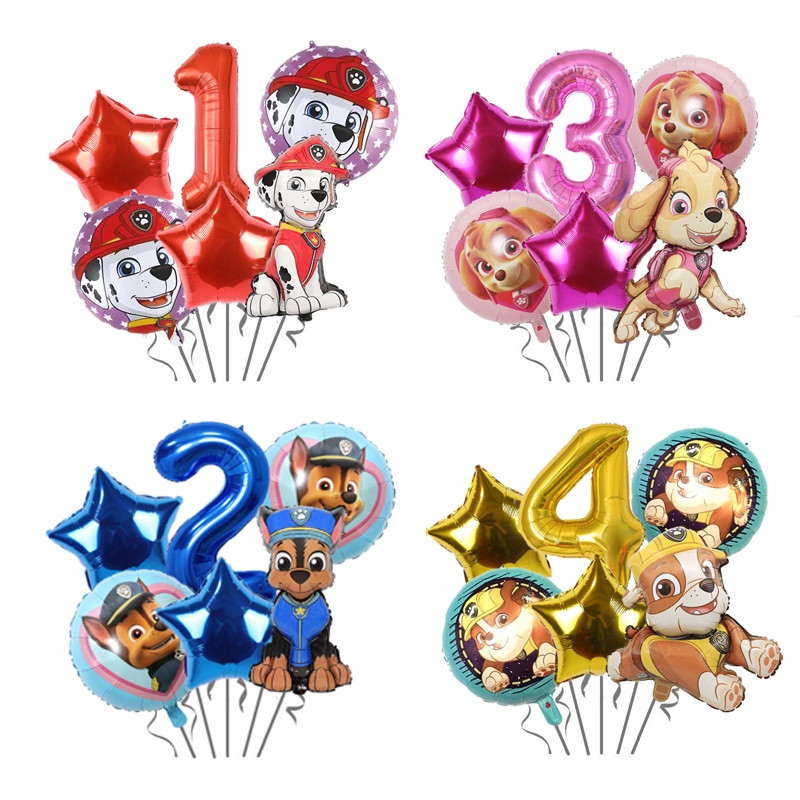 6 Pçs/set PAW Patrol Tema Cães Dos Desenhos Animados Balões Foil Conjunto 32in Número Balão Crianças Festa De Aniversário Decorações De Casa