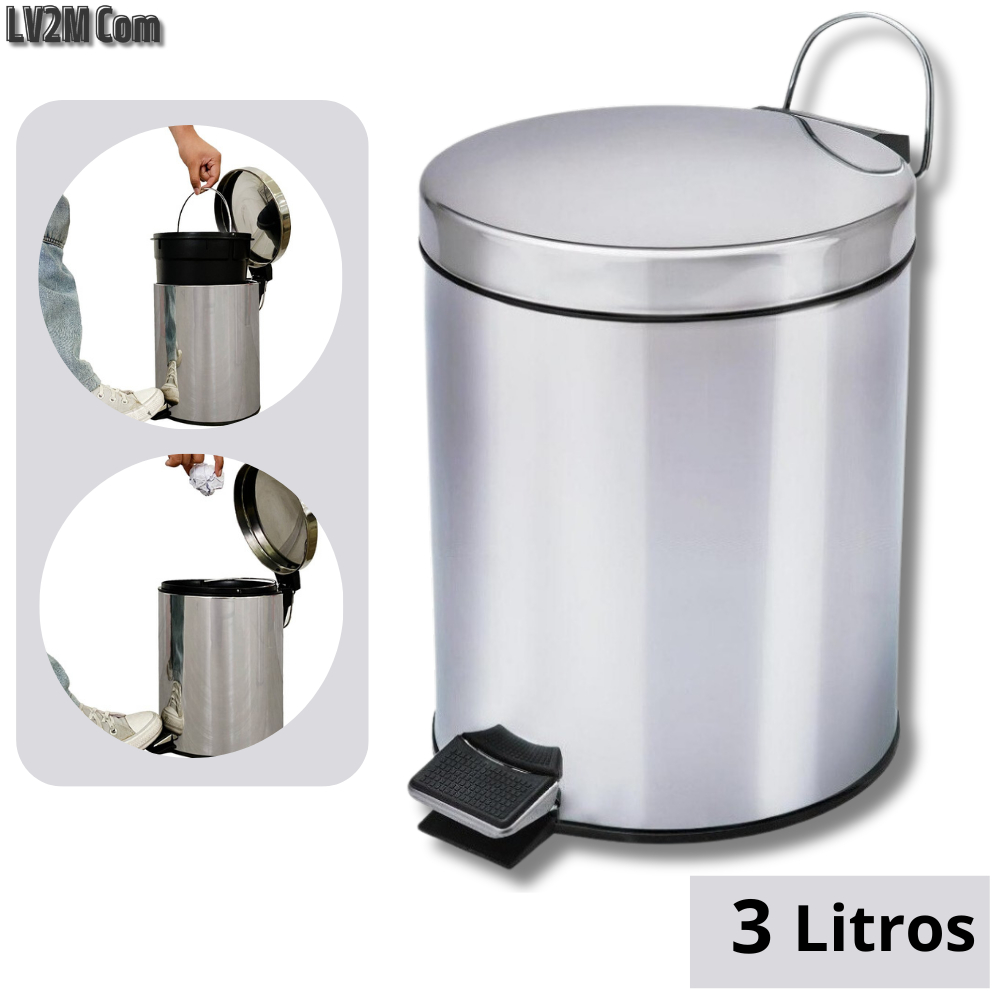 Cesto De Lixo lixeira 3lts 100% Inox C/ Pedal Banheiro E Cozinha quarto sala Escritório