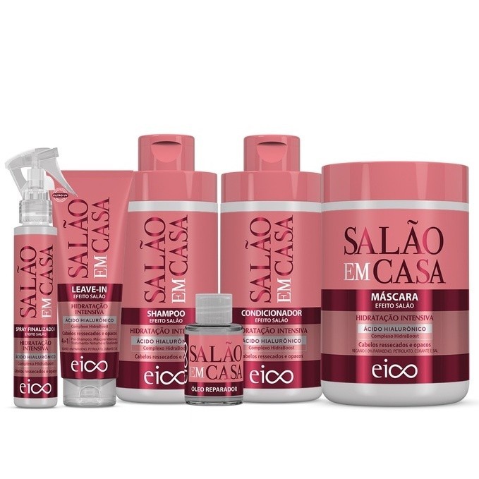 Eico Salão Em Casa Hidratação Intensiva Shampoo Condicionador 800ml + Máscara 1kg + Leave-in + Spray + Óleo Reparador
