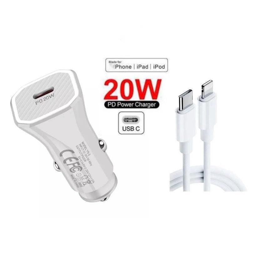 Carregador Veicular de iPhone Turbo 20w Carregador de carro PD Tipo C Turbo X Lightning para iPhones