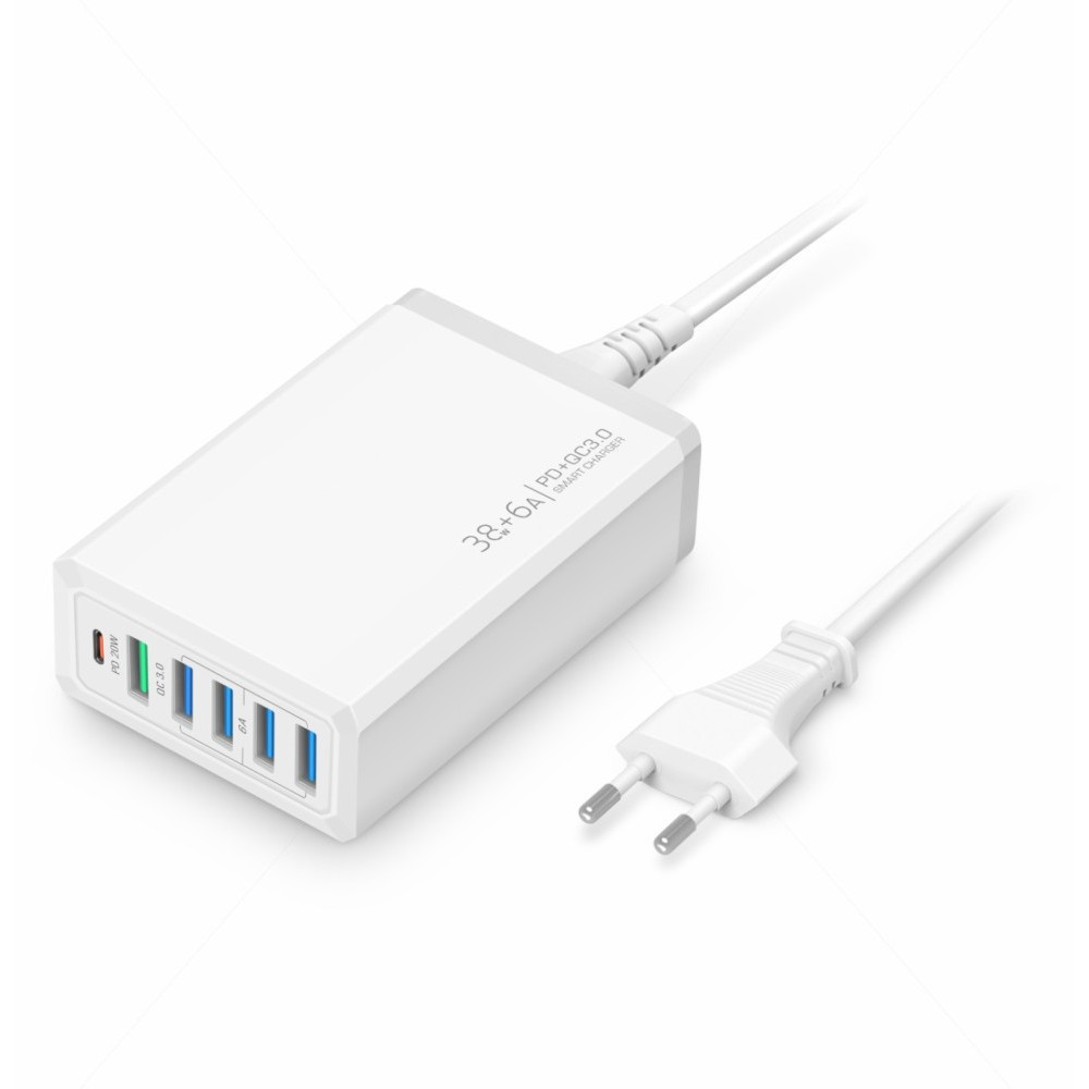 Estação Carregador Turbo De Celular 5 Saídas Usb 6A + PD Tipo-C 20W com Quick Charge 3.0