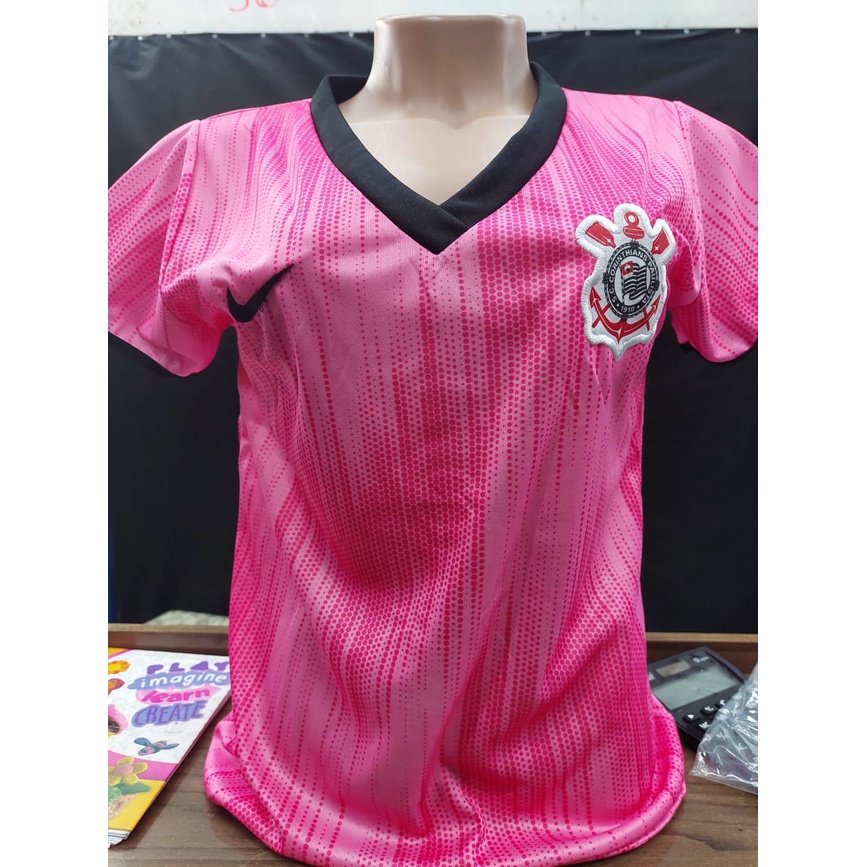 Blusa Camisa Time de Futebol do Corinthians Baby Look Rosa Lançamento 2021