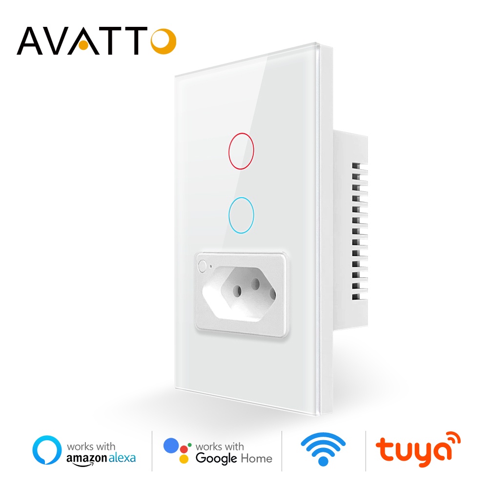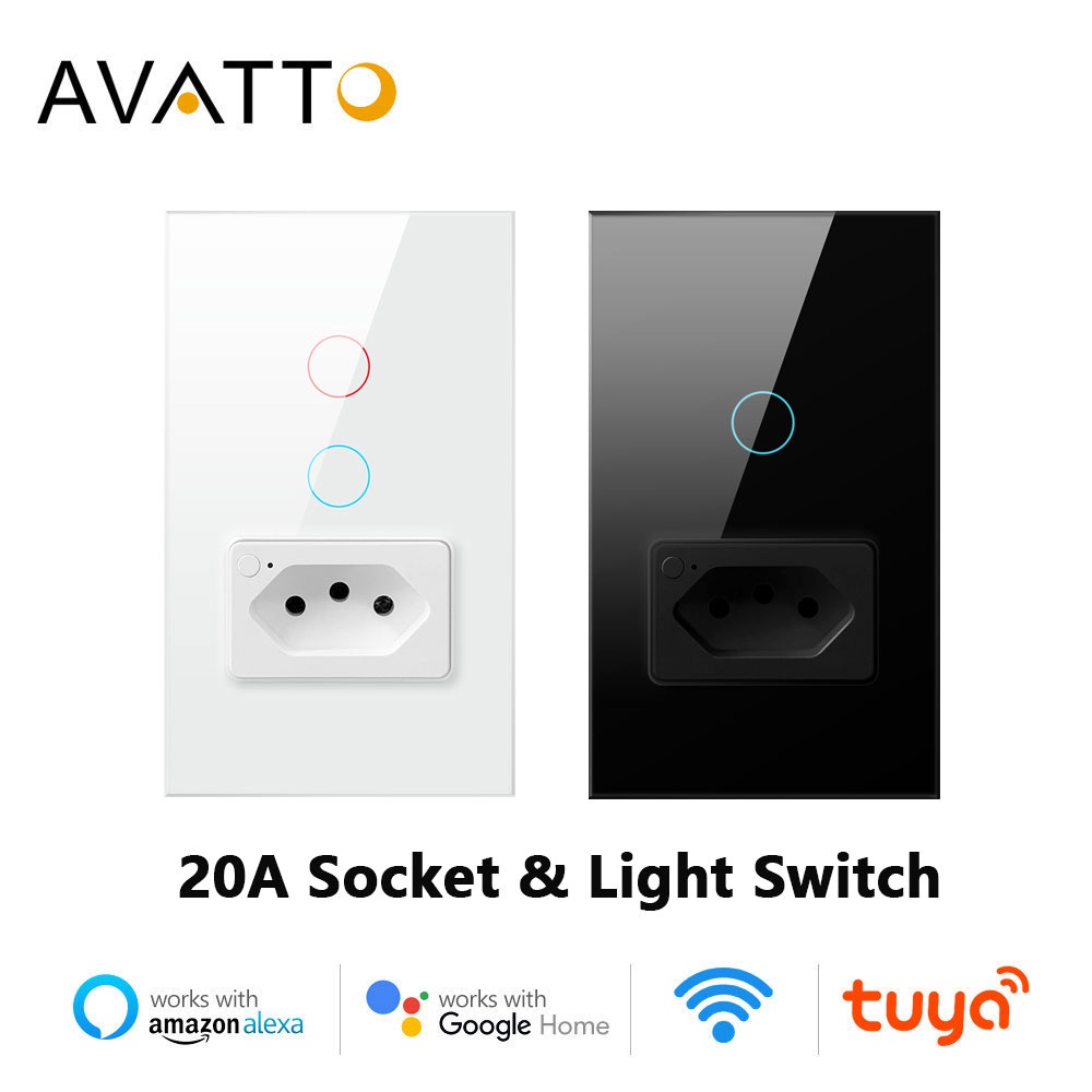 Interruptor De Luz Inteligente AVATTO Tuya WiFi Com Tomada 20A Brasil Padrão 4X2 Painel De Vidro 1/2 Botões Funciona Alexa Google home