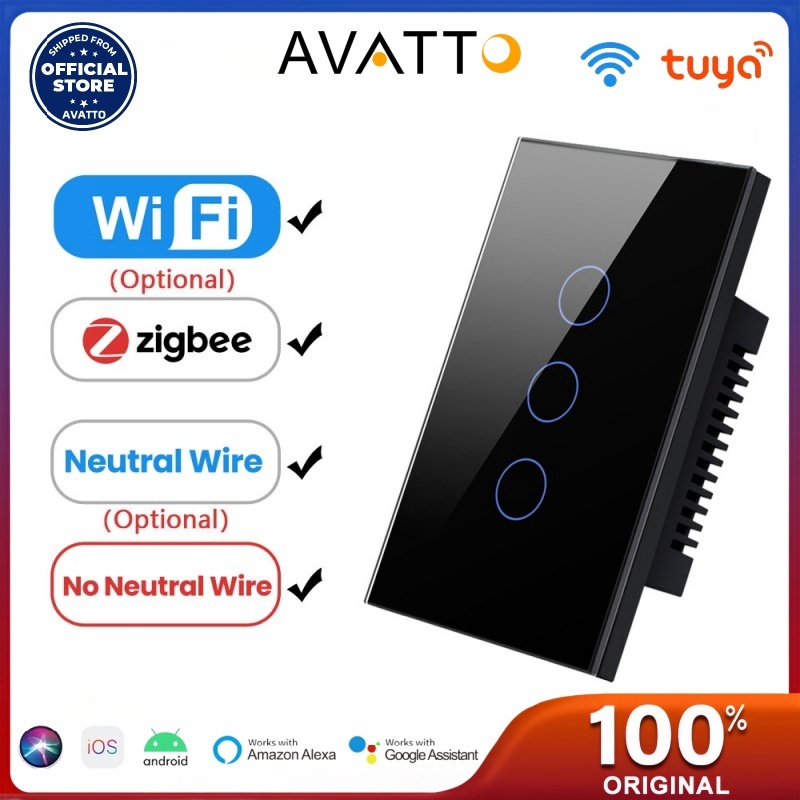 AVATTO Tuya WiFi/Zigbee Interruptor De Luz Inteligente , Fio Neutro/Sem Necessária Para Parede Toque Trabalho Com Alexa , Google Home