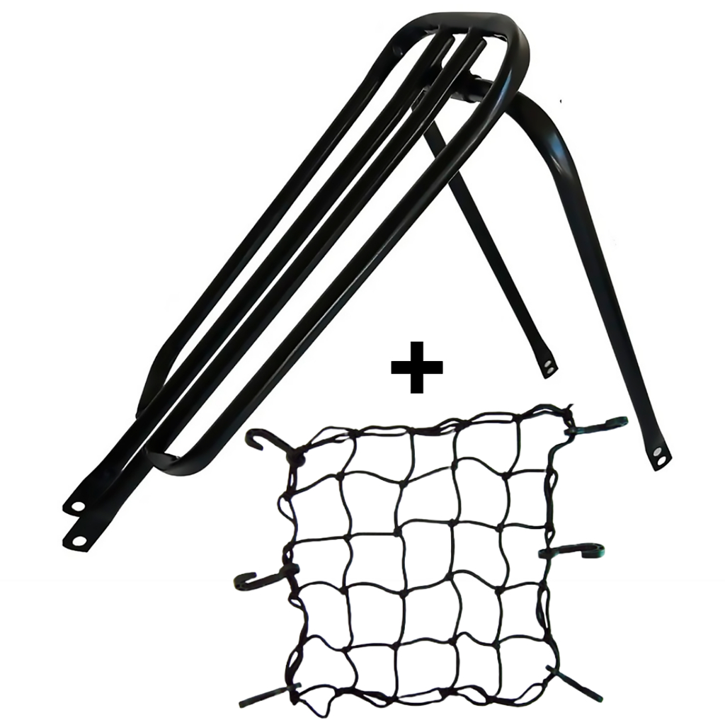 Garupa Reta BH Modelo Mais Resistente Bagageiro Garupeira Preta + Rede Redinha Preta 35x35cm Bicicleta Bike