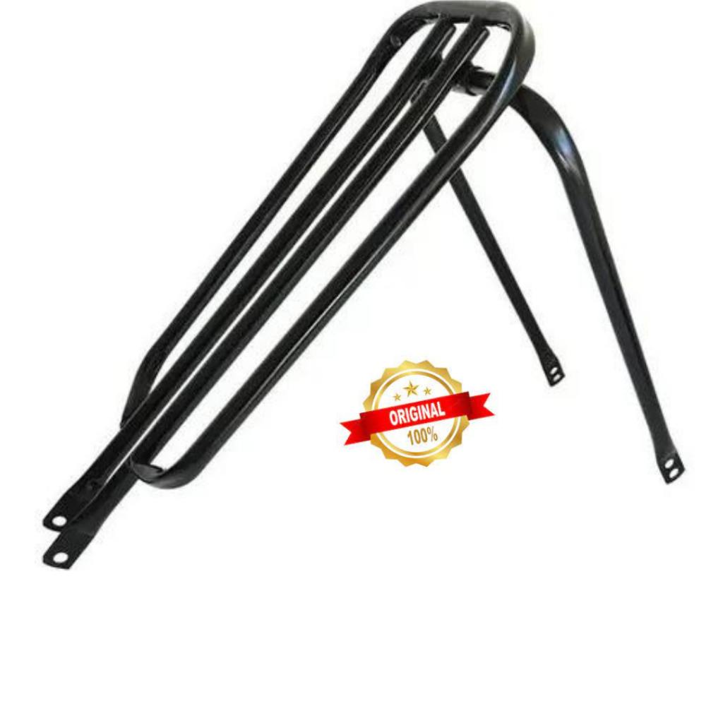 Garupa Garupeira Reta BH Preta Bagageiro Bicicleta + Descanso Apoio Central Cavalete Preto 2 Pernas Modelo de Moto Bike