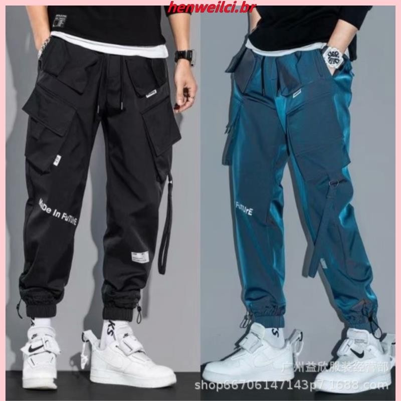 Calça Da Cargo Dos Homens De Moda Calças Hip Hop Multi Bolso De Rua Casual Esportivas