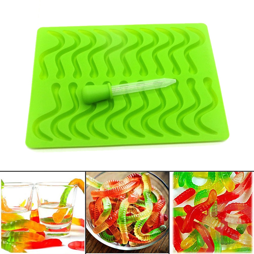 Molde Forma Silicone Bala Gelatina Minhoca Com Conta Gotas