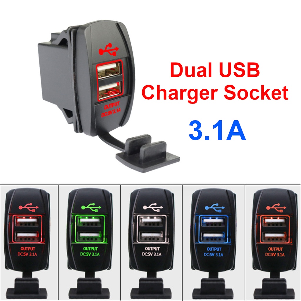 Adaptador De Carregador USB Duplo Para Carro 12V/24V 5V 3.1A Tomada De Saída De Energia Led À Prova De Pó iPhone Xiaomi Redmi Samsung Motocicleta RV
