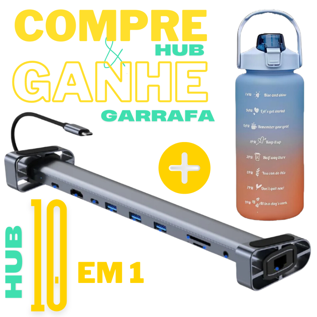 Hub 10 em 1 Estação Usb Tipo C + Garrafa 2 Litros ( Cor Aleatória )