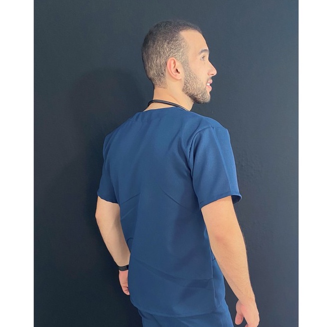 Blusa de Pijama Cirúrgico Scrub Oxford Azul Marinho, Seca Rápido e Não Amassa !!