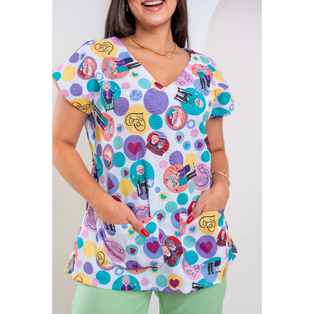Blusa Scrub Pijama Cirúrgico Estampado Enfermagem Medicina