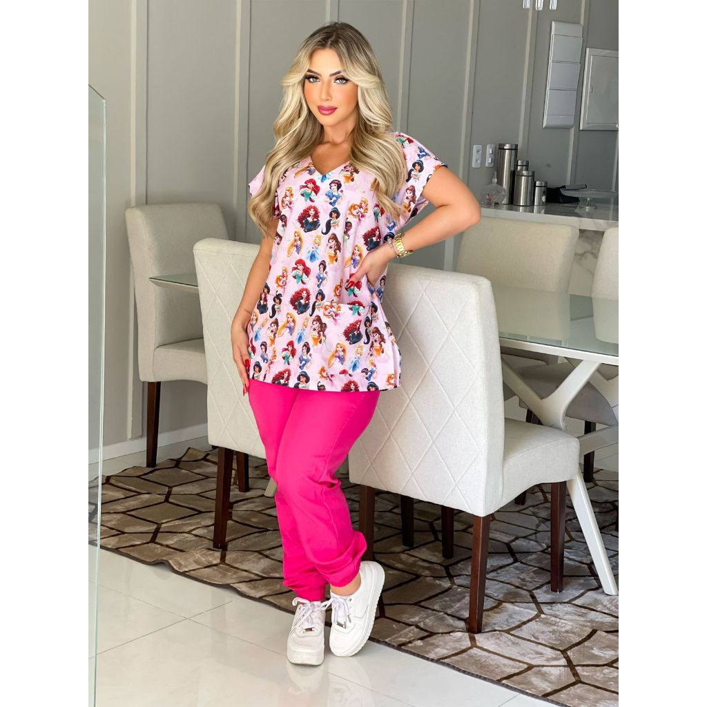 Blusa Bata Scrub Pijama Cirúrgico Estampado Personalizado - PRINCESA NOVO